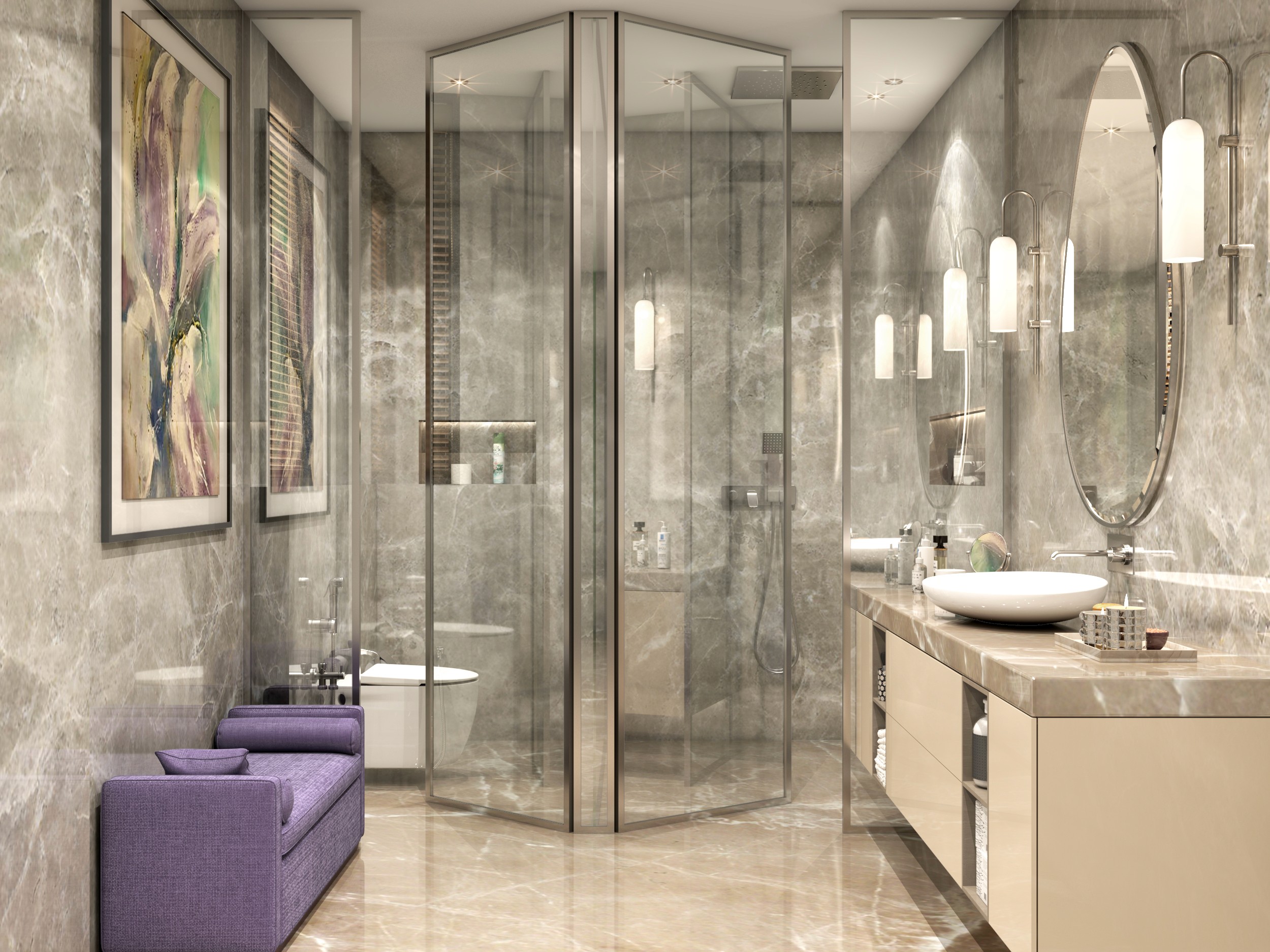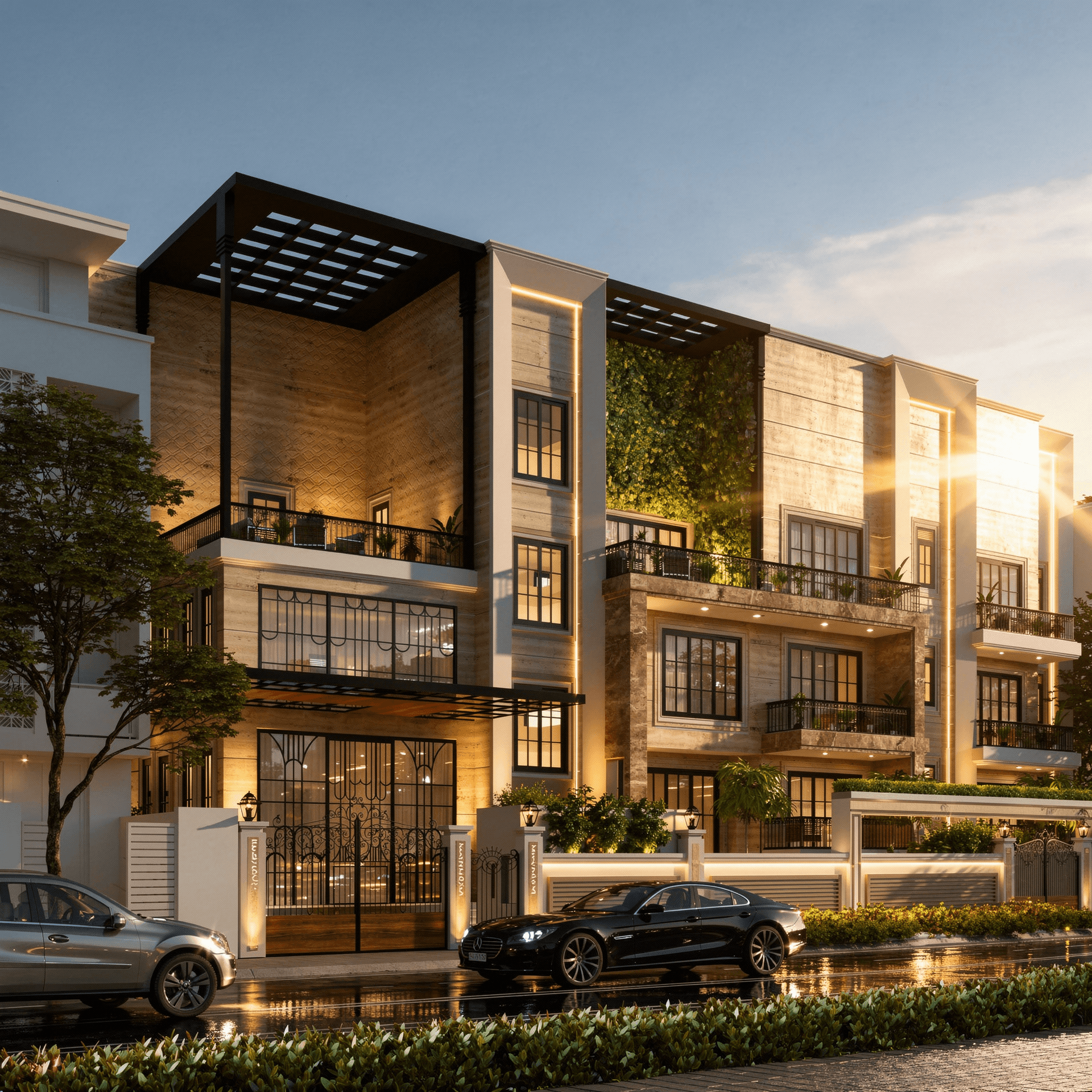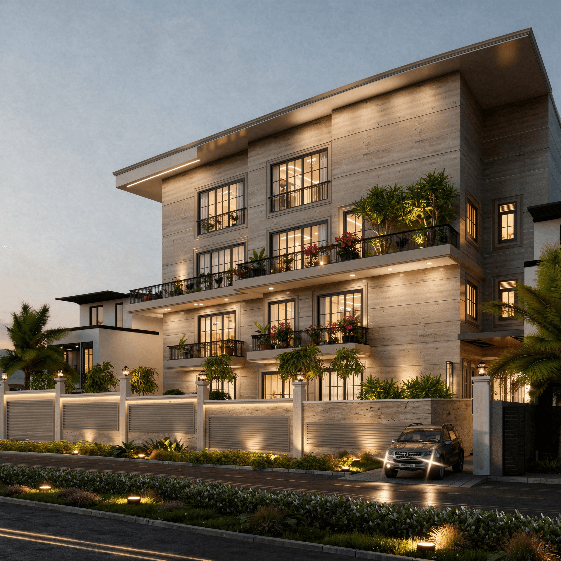 This residence would just be a breath of fresh air in the neighbourhood! Respectful to its surroundings, the building is organized with a collection of various screens and cubes. It has been designed to bring in maximum daylight and enable cross ventilation across all levels The balance between solid and transparent surfaces contrasts the clean lines on the façade beautifully. The elegant structure resides harmoniously within its urban context. The overall Intent was to design a façade in a contemporary style wherein the amalgamation of the mass and lighting together create drama.
