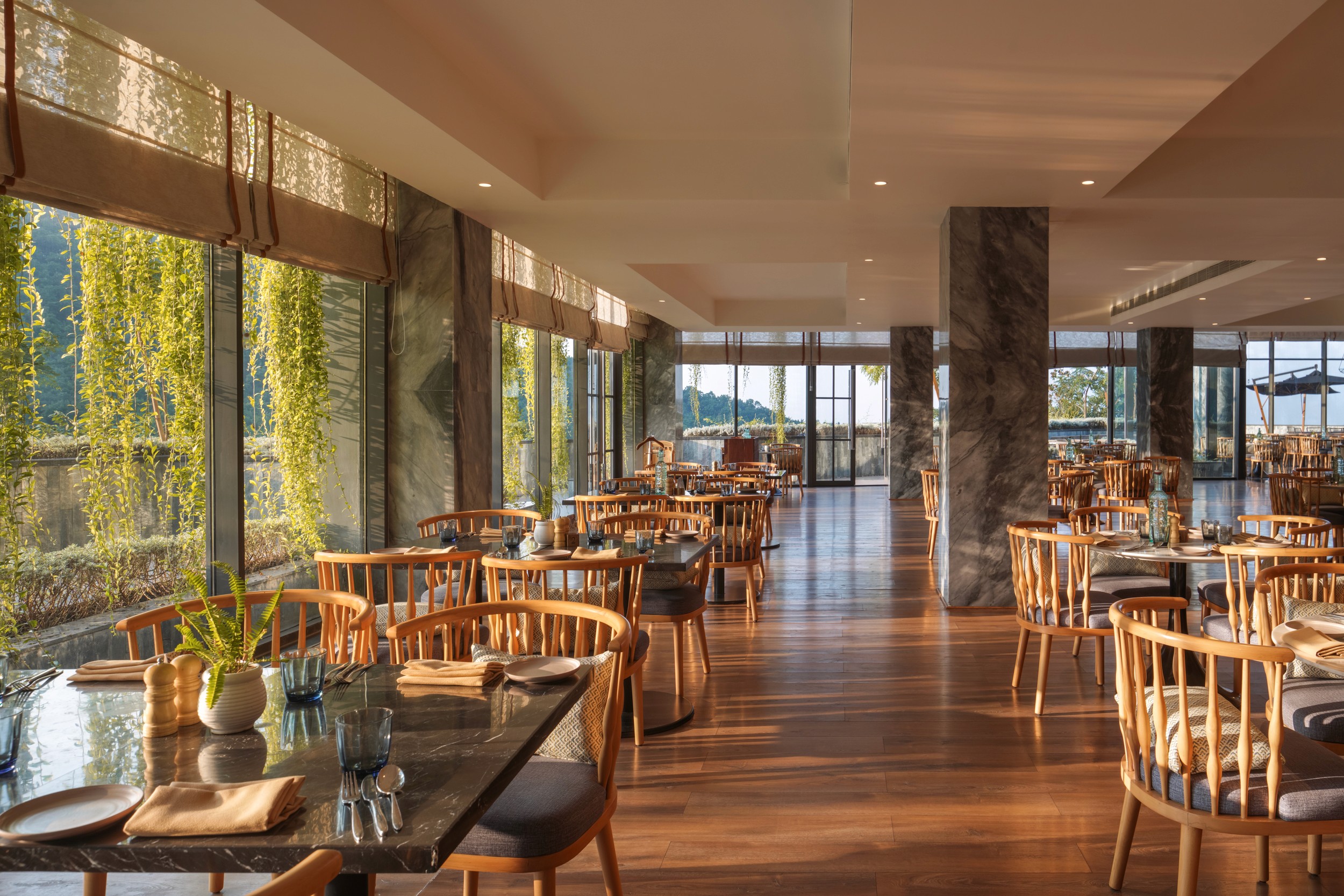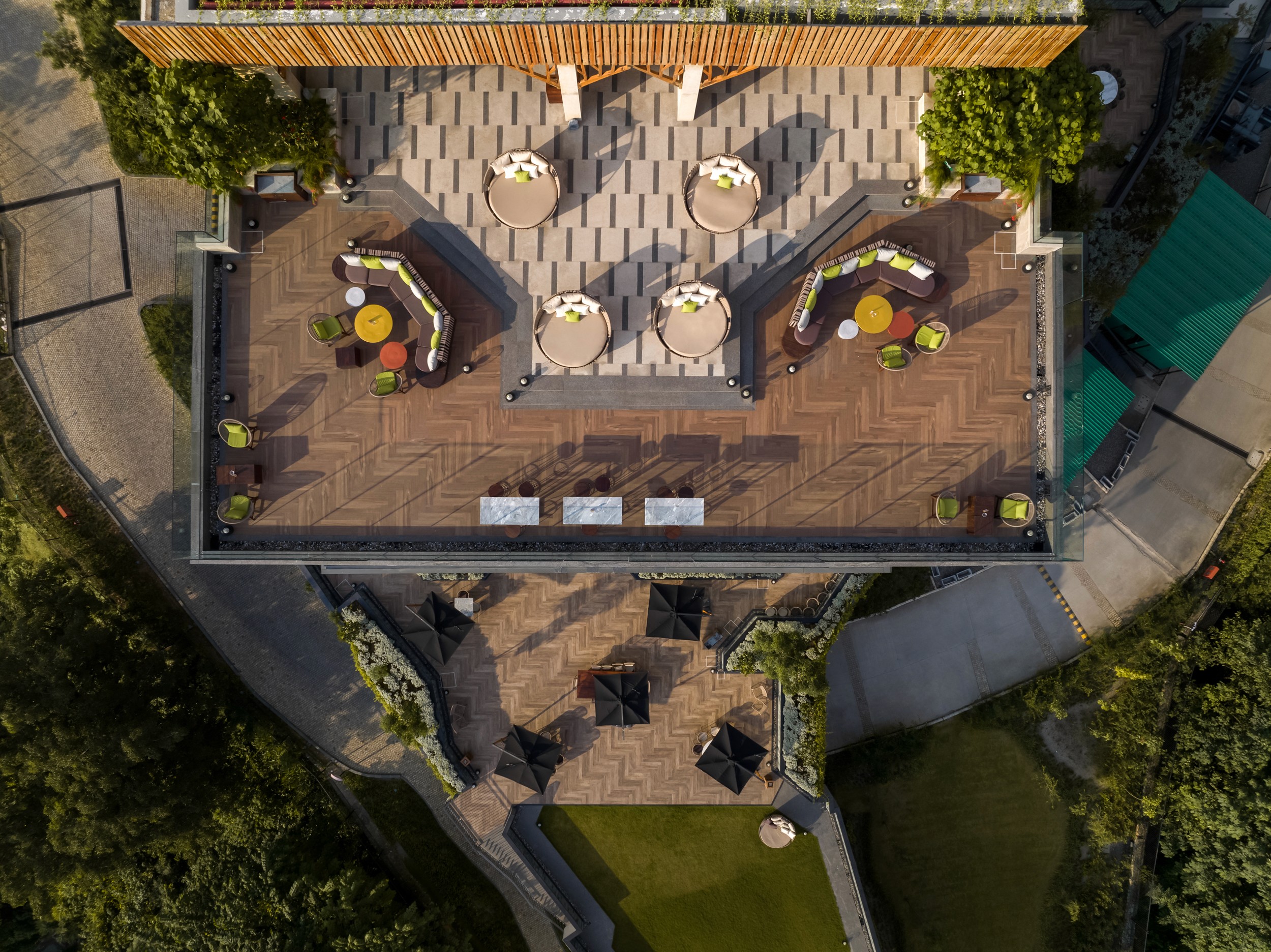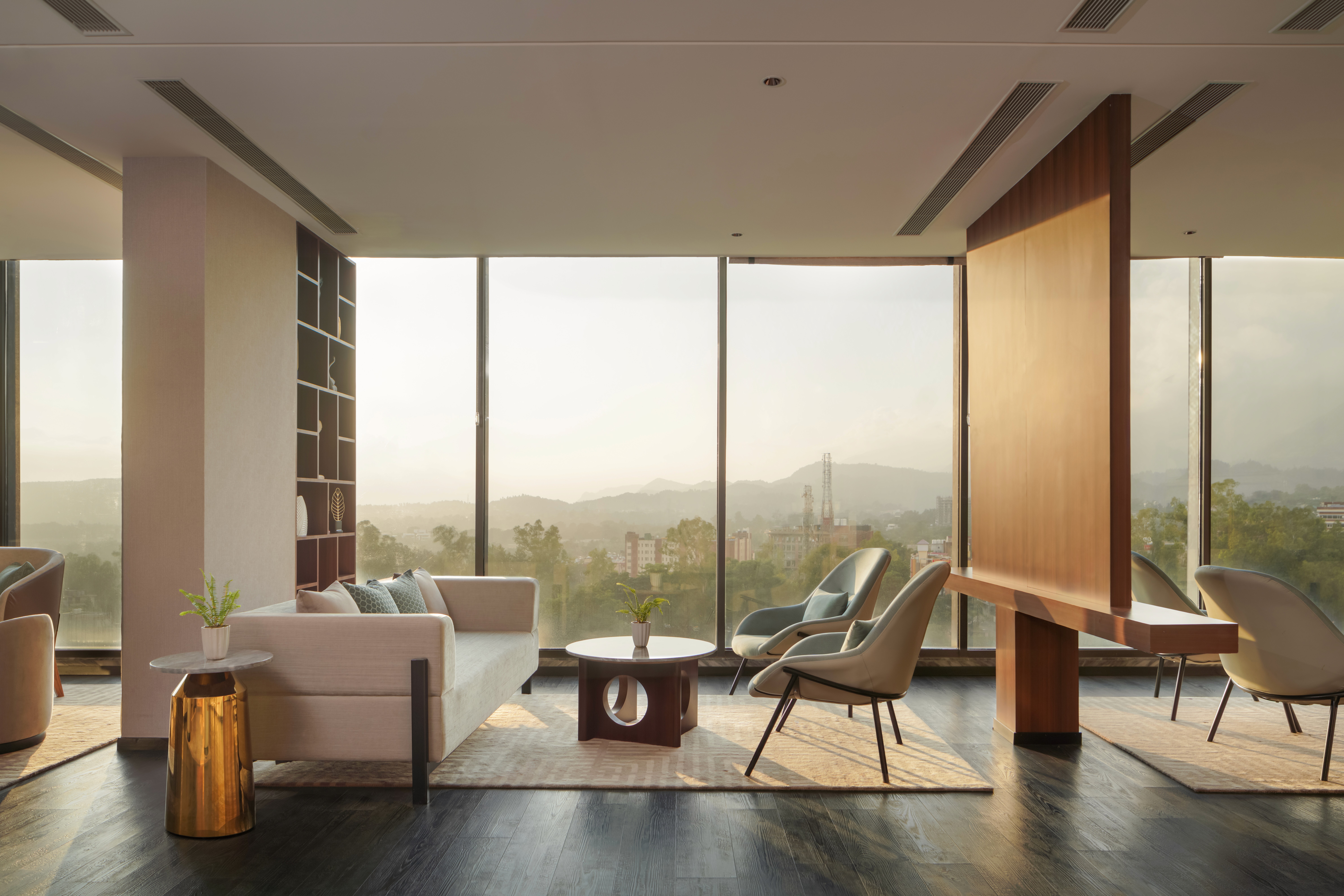 An open floor plan, natural aesthetics, textured spotlights and a sense of warmth perfectly describe this villa. The luxury modern traveler is impressive, innovative and has ever-evolving demands. The architecture and design of Hyatt Regency, Dehradun is a reaction to this demand of enhanced individuality and social wellness. The Hyatt brand is the epitome of sophisticated modern aesthetics which, when combined with the beautifully rich cultural context, creates a unique and inviting experience. This destination hotel boasts 268 keys, a presidential suite, conference room and broadcast lounge, banquet, spa, salon, gym, bar and pub, specialty restaurant and a kids area. The design revolves around the idea of providing unobstructed views of the city.