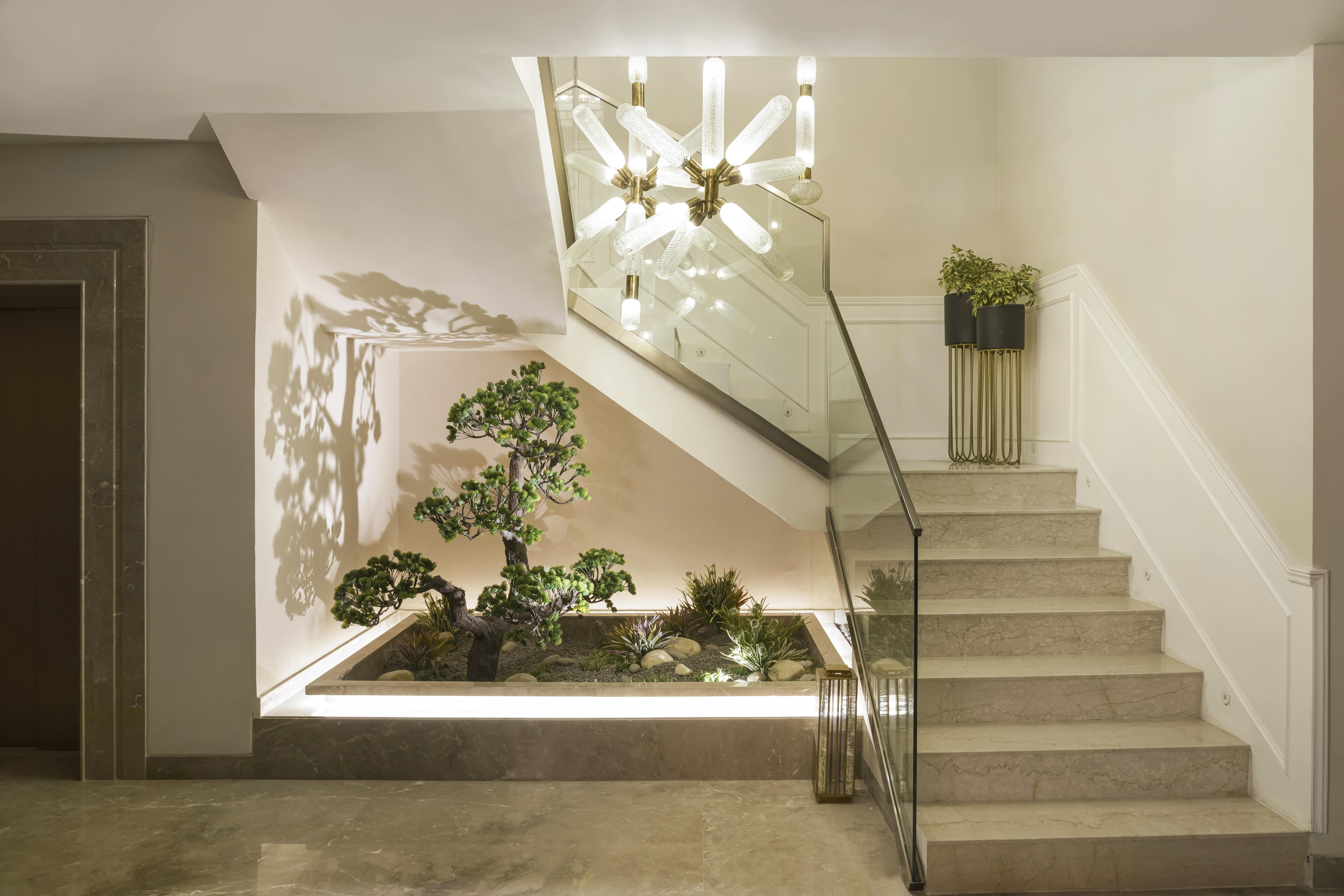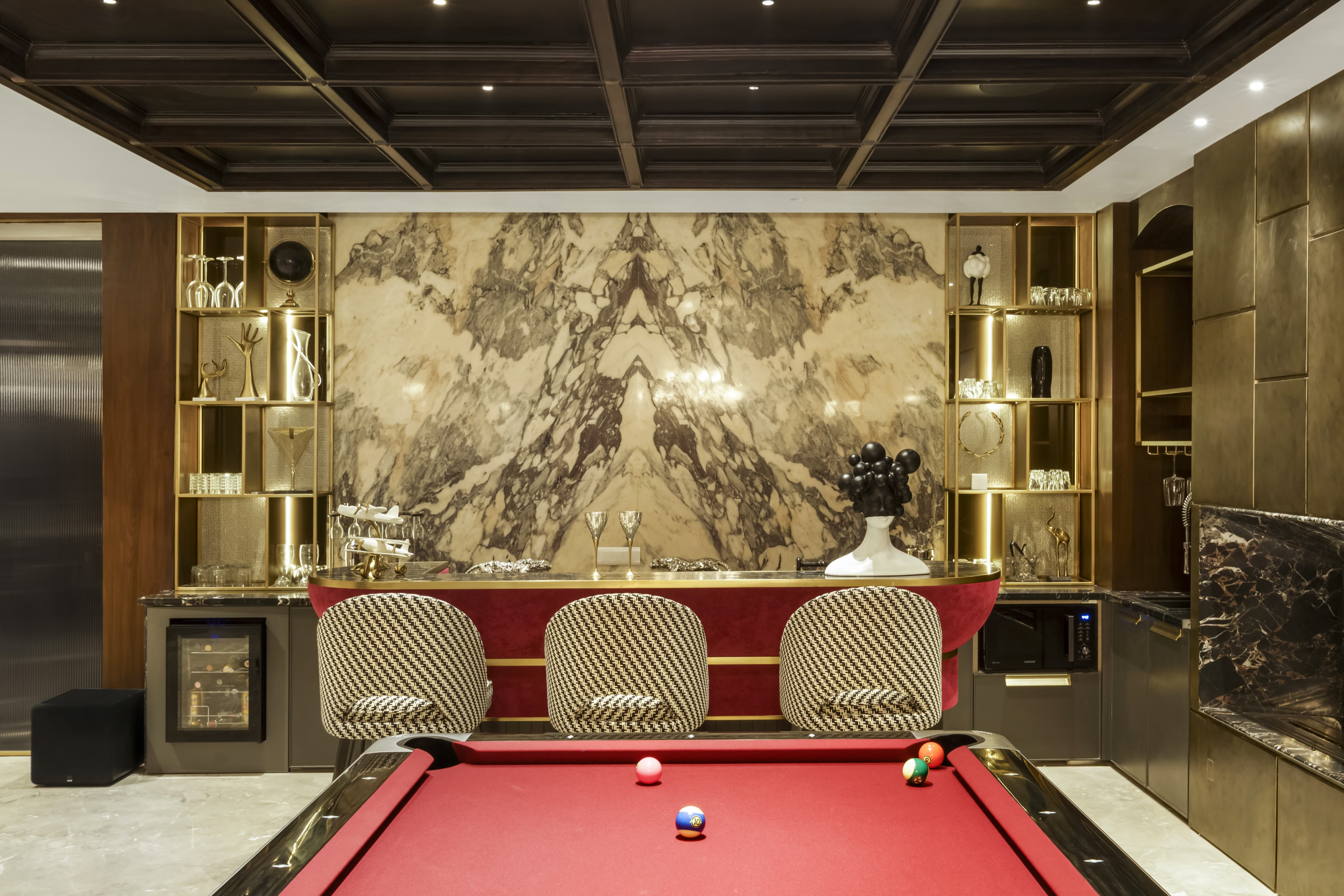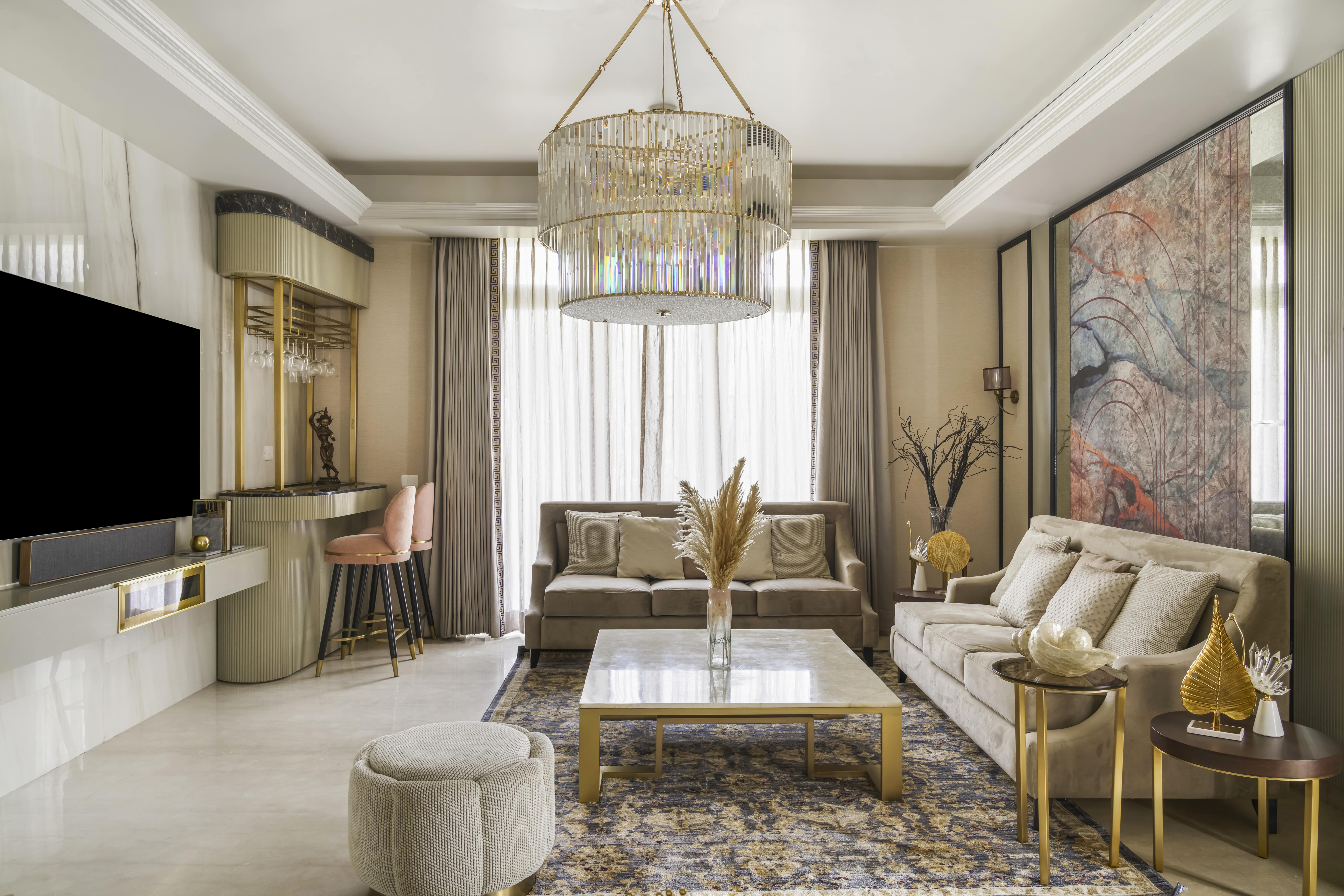 An open floor plan, natural aesthetics, textured spotlights and a sense of warmth perfectly describe this villa. Sparked by a slight play of natural light and shadows, the residence showcases recurring features of ample window - openings and strapping skylights within its blueprint. Tracing an artful contrast throughout the homestead, an eclectic curation of furniture crafts a prismatic juxtaposition against the light-toned tenor of the dwelling.