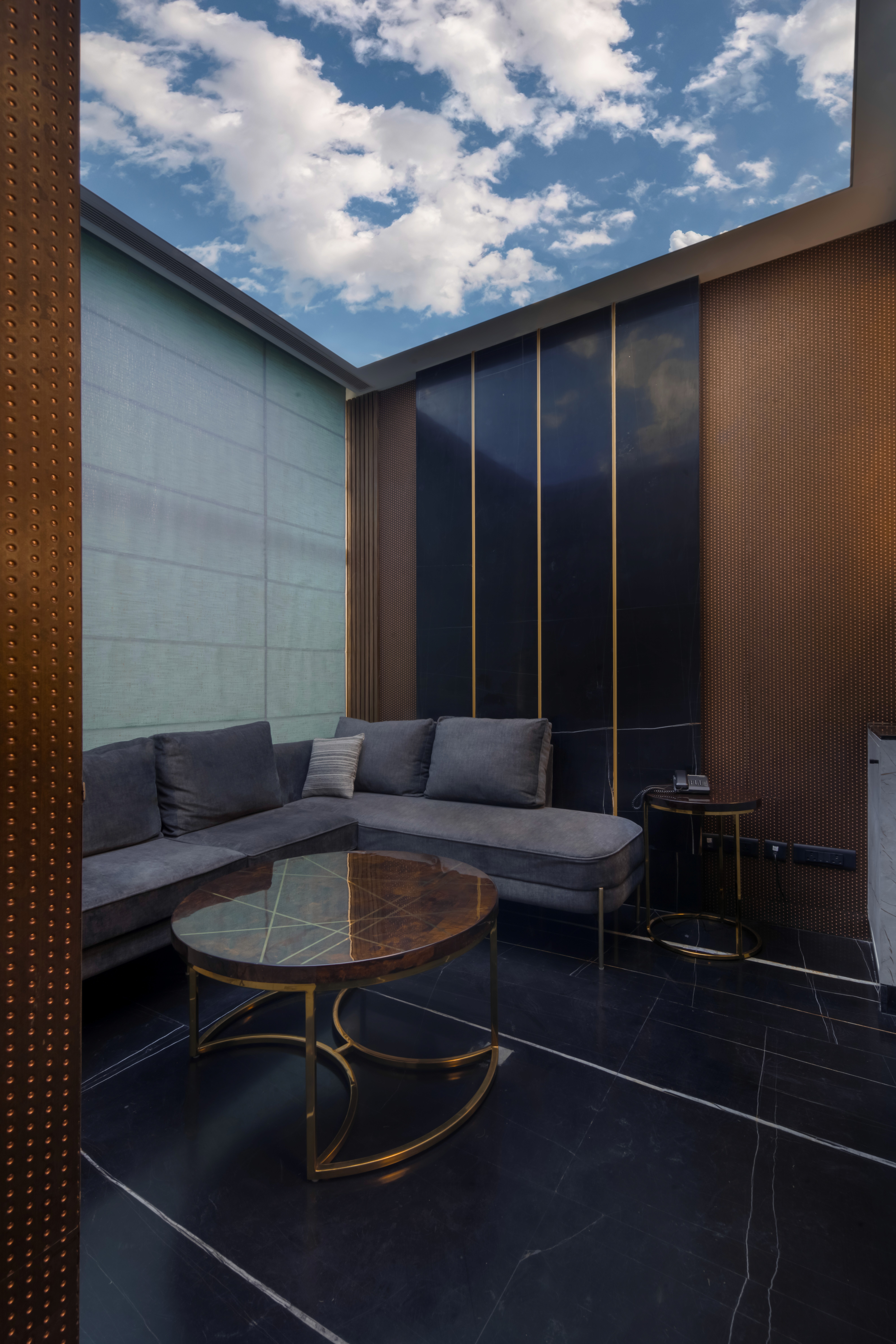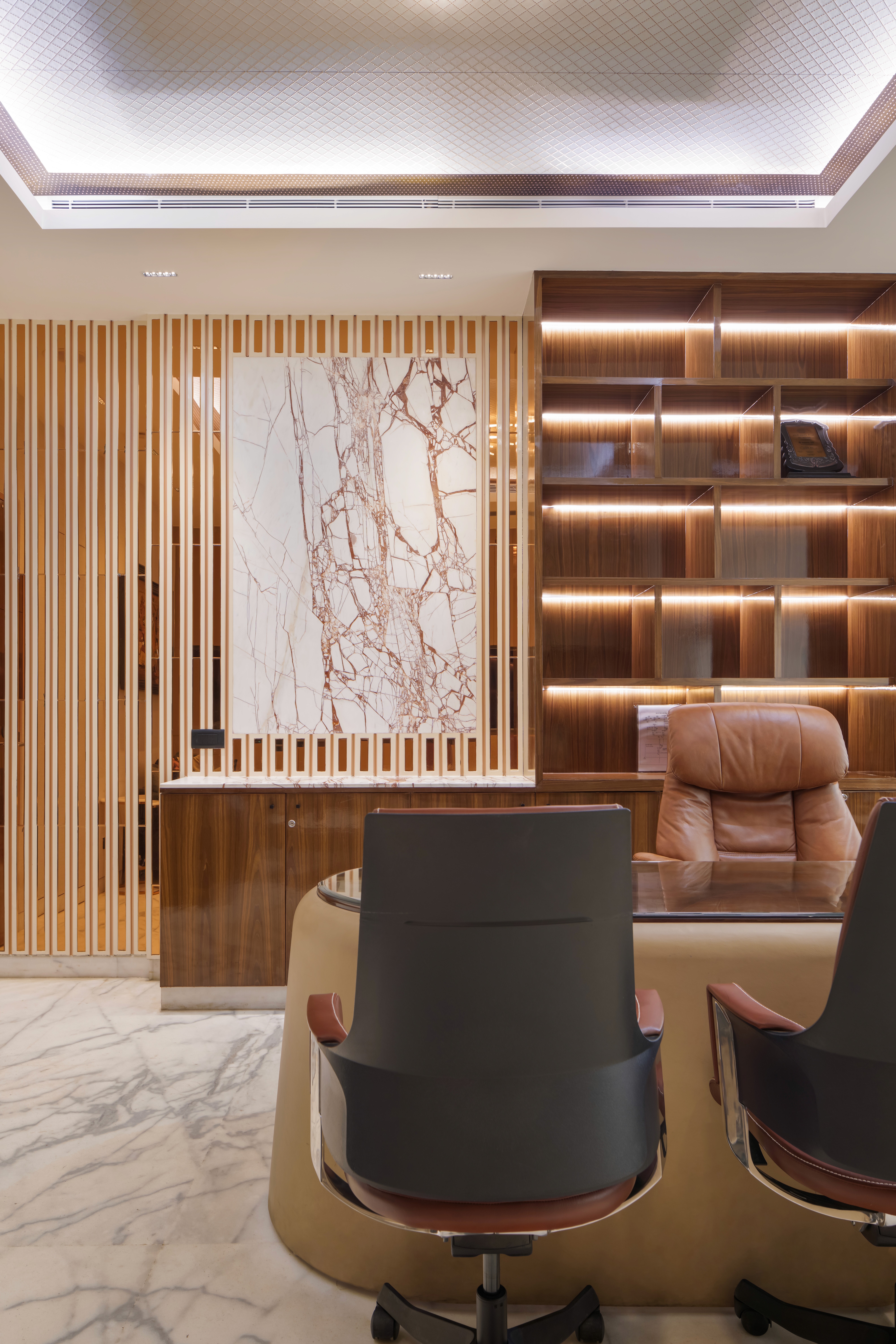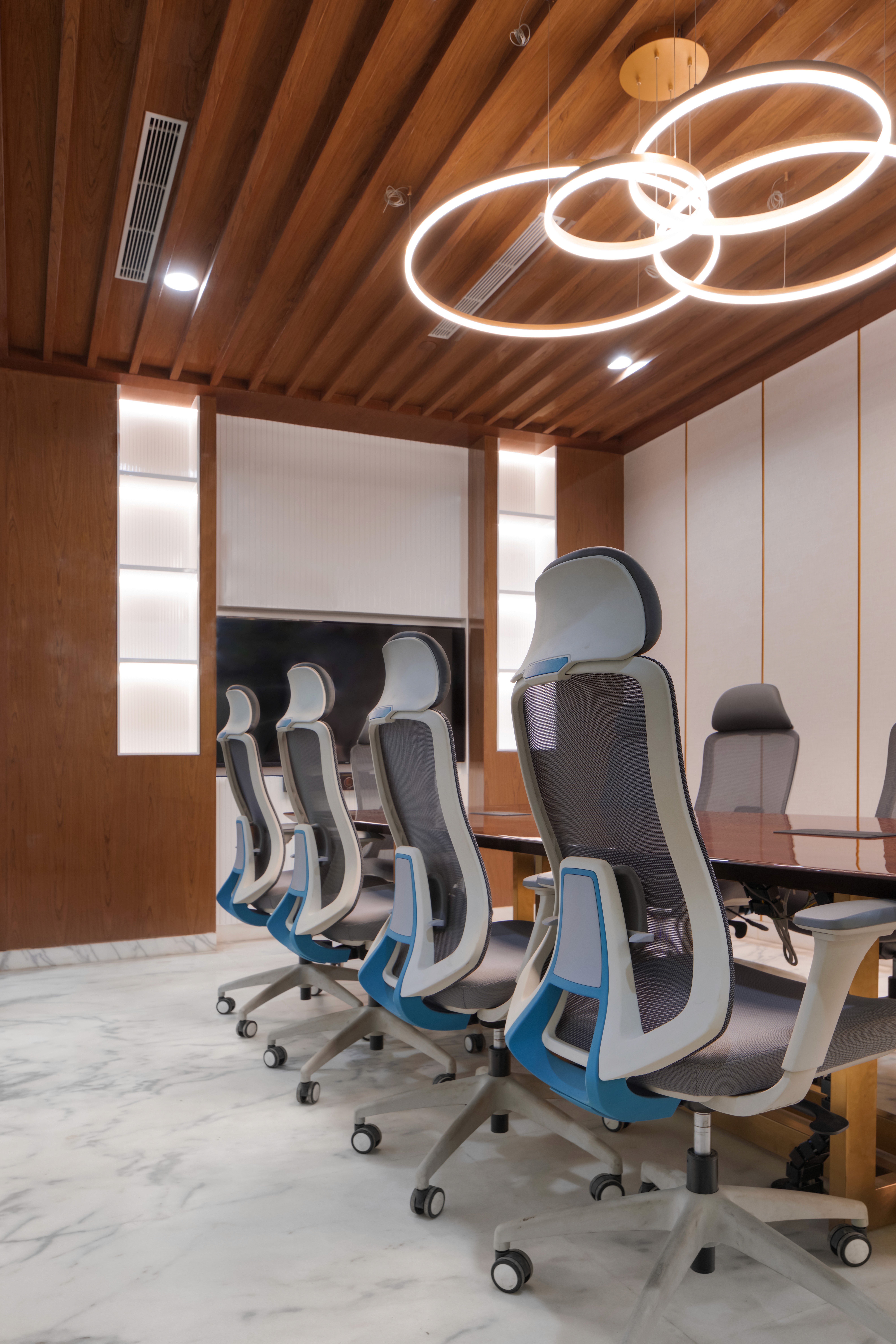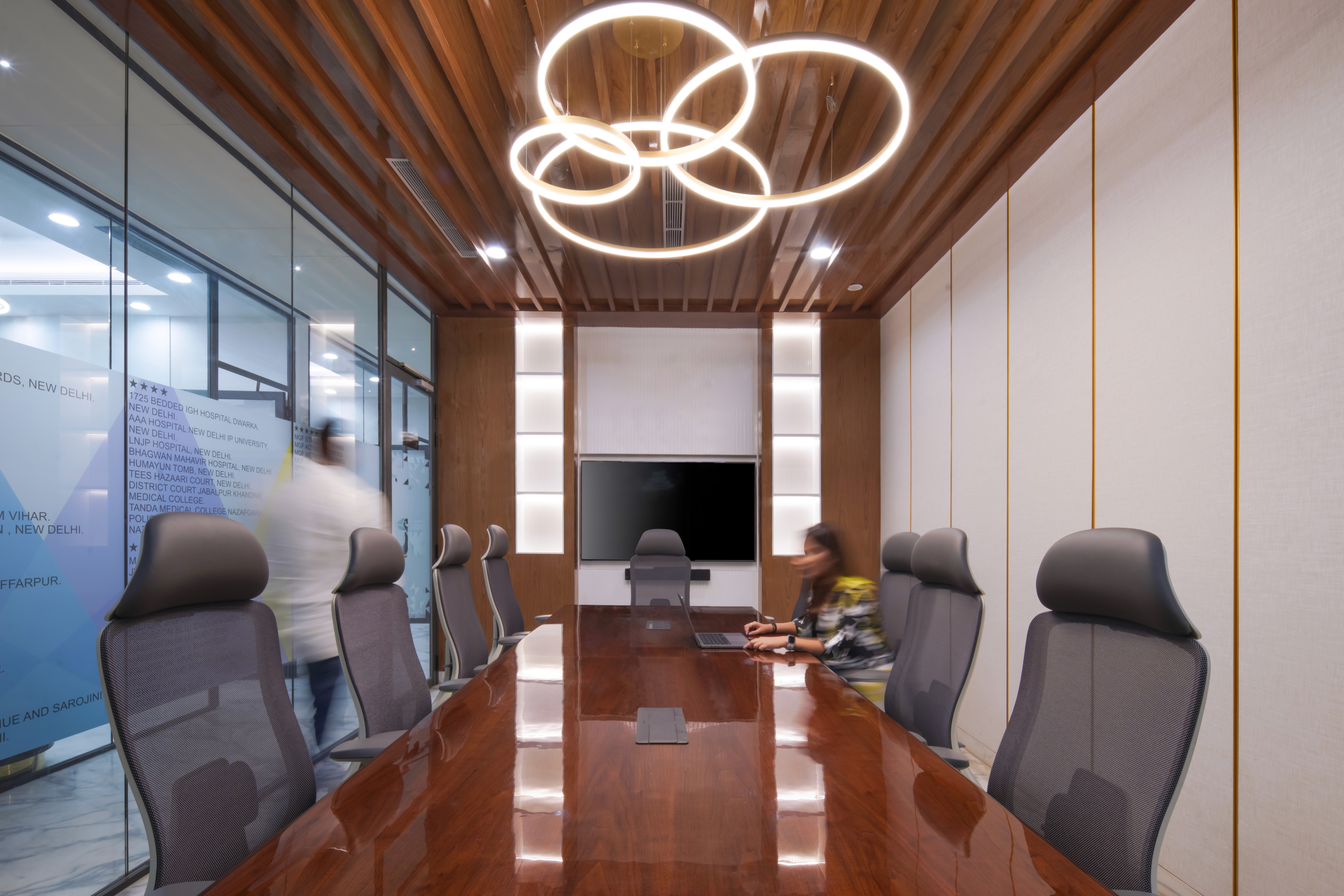 A linearity of vibrant tones & colours are used across the transition space leading to working stations in this Delhi NCR office.