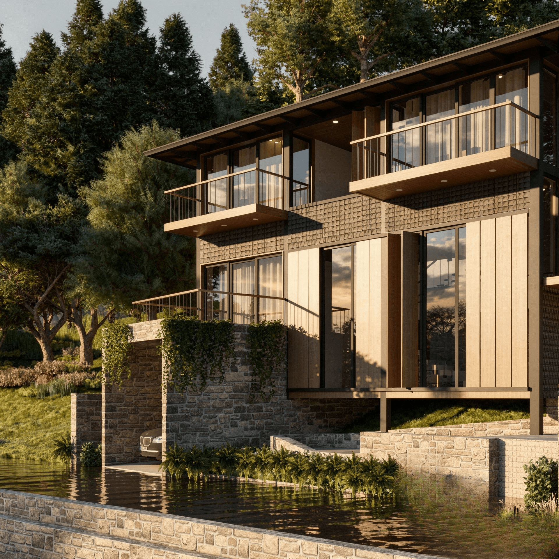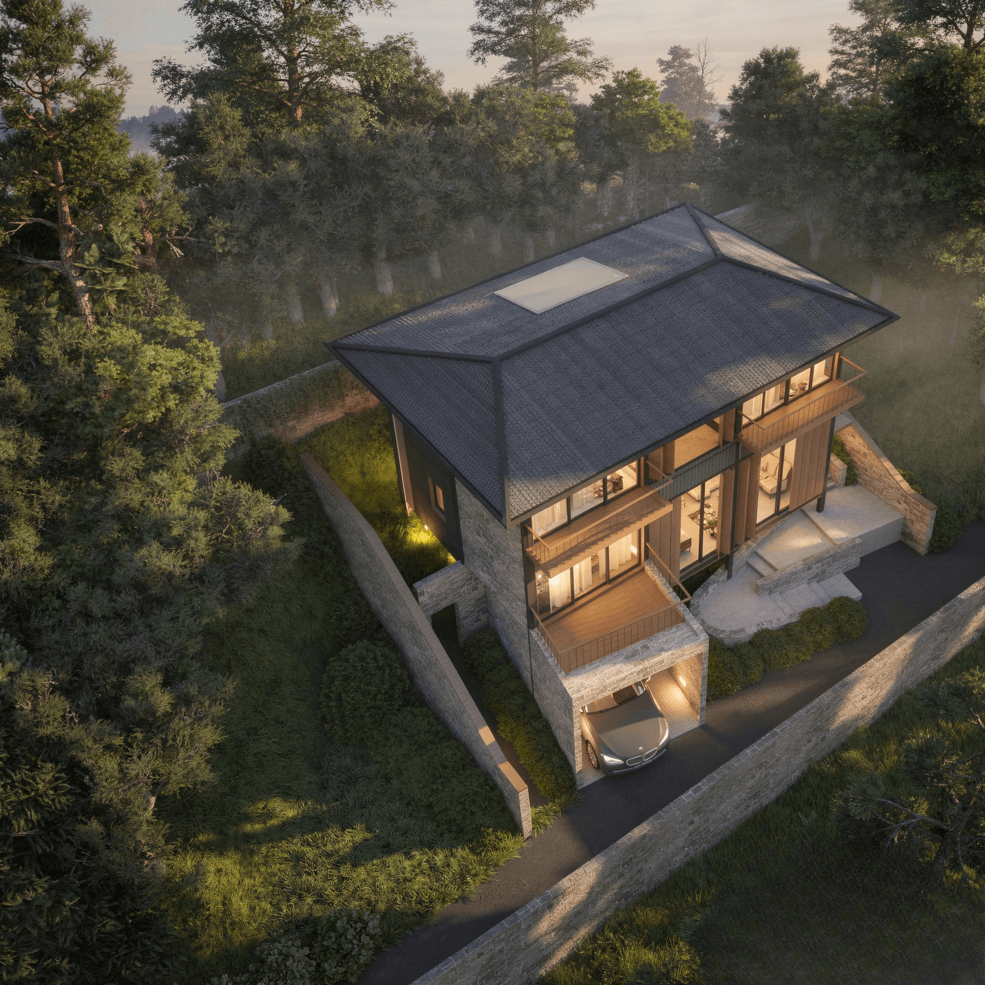 Located in the serene, mist-covered hills of Mussoorie, this mountain villa is an architetral tribute to its natural surroundings. The design is anchored by the use of locally sourced materials, featuring local stone and warm timber that ground the structure in its Himalayan context. Rich, earthy textures are woven throughout the facade, ensuring the space blends into the lush backdrop of its surroundings. Strategic large openings and expansive balconies are designed to allow for one to enjoy the lush landscape, effectively blurring the lines between the warm interiors and the lush outdoors. This residence prioritizes an organic sense of luxury, where the architecture acts as a quiet observer of the mountains. As a result, this hillside retreat stands as a conscious extension of the terrain itself.